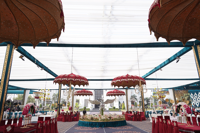 Step into a world of royal grandeur where traditional Indian architecture meets modern sophistication. Our banquet hall features ornate interiors adorned with intricate carvings, majestic chandeliers, and rich fabrics that create an atmosphere of timeless elegance. With flexible seating arrangements and customizable décor options, we transform our space to perfectly match your vision, whether it’s an intimate gathering or a grand celebration.