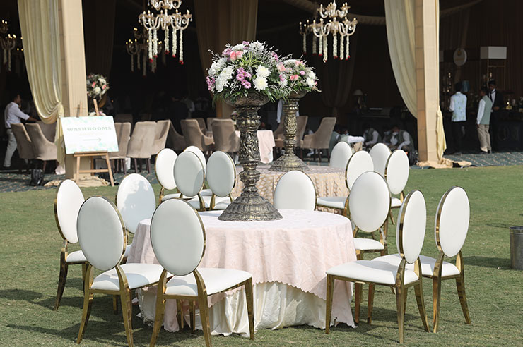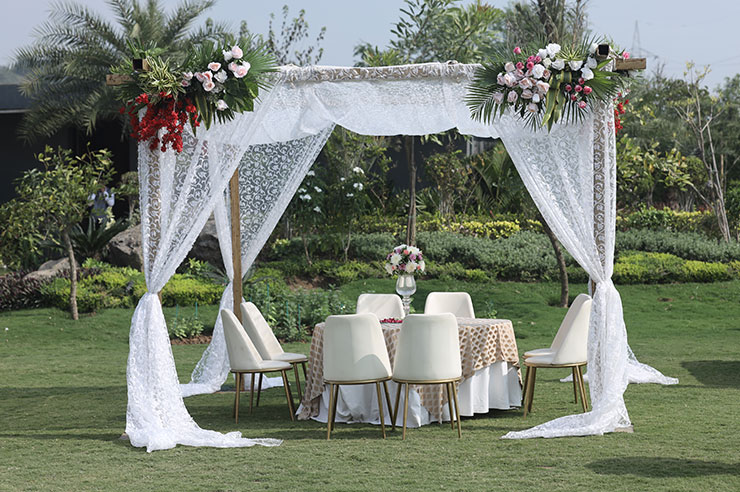 We provide 25,000 sq. ft. of beautiful green grass for wedding ceremonies, receptions, and other events at Maharaja Mahal. The vivid green and perfectly maintained grass provide a delightful scenic beauty aspect to your gatherings while adding a touch of richness and glamour. The lively landscape in and around the lawn fits an attractive accent to the ceremony.